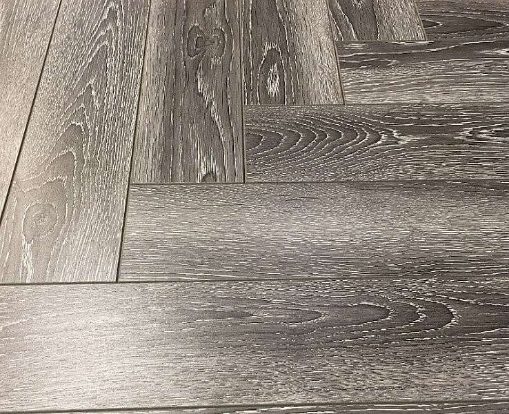 Это полностью готовое покрытие. Оно не требует финишной отделки – верхний слой с "Елочкой" рисунком прекрасно вписывается в любое оформление комнаты и хорошо смотрится со всеми настенными и потолочными материалами. Толщина доски составляет 12мм, что позволяет сделать пол прочным, устойчивым к прогибу. Ламинированная панель выдерживает большой вес мебели, на ней не остается следов от ножек и царапин. Материал хорошо держит тепло внутри помещения, не пропускает внутрь холод.