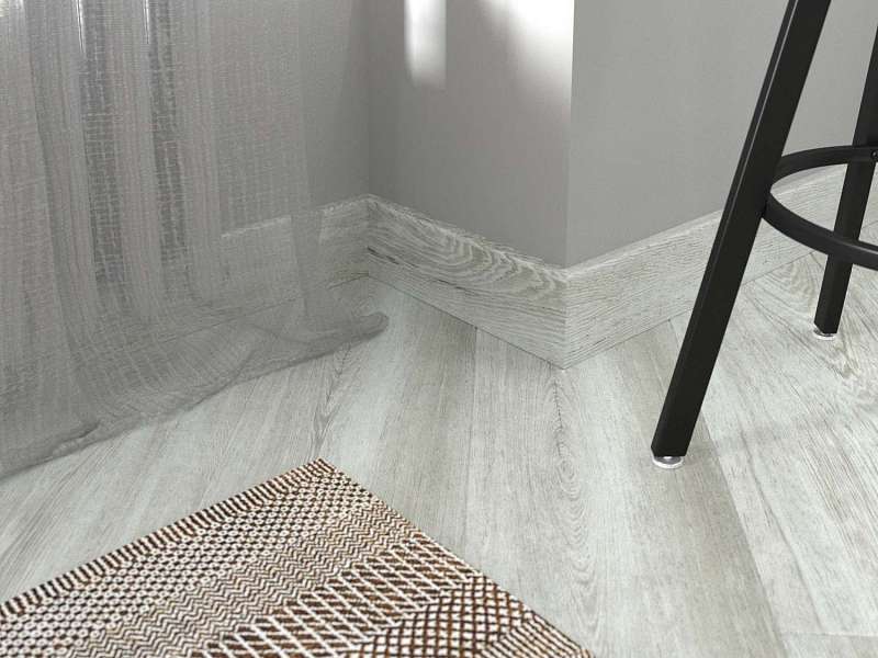 Высота плашек – 60мм. Она позволяет заводить под плинтус стеновые панели и полностью закрывать технические зазоры между стеной и покрытием пола. Можно не выравнивать стены и пол в месте их стыка.