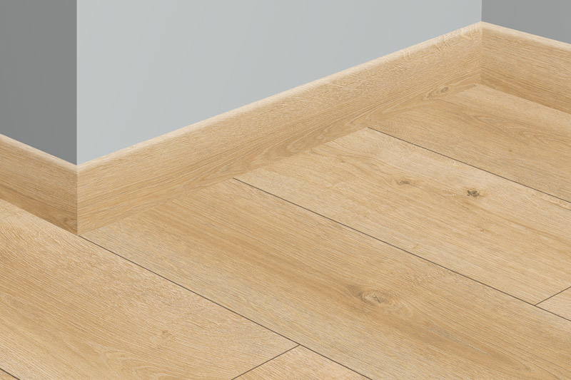 Высота плашек – 85мм. Она позволяет заводить под плинтус стеновые панели и полностью закрывать технические зазоры между стеной и покрытием пола. Можно не выравнивать стены и пол в месте их стыка.
